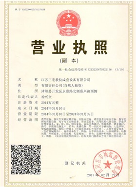 江蘇三毛教儀成套設(shè)備有限公司是一家集設(shè)計(jì)、生產(chǎn)、銷售、售后為一體的大型制造企業(yè)。坐落于風(fēng)景秀麗的花木之鄉(xiāng)、全國經(jīng)濟(jì)百強(qiáng)縣、國家級(jí)經(jīng)濟(jì)開發(fā)區(qū)沭陽縣永嘉路。